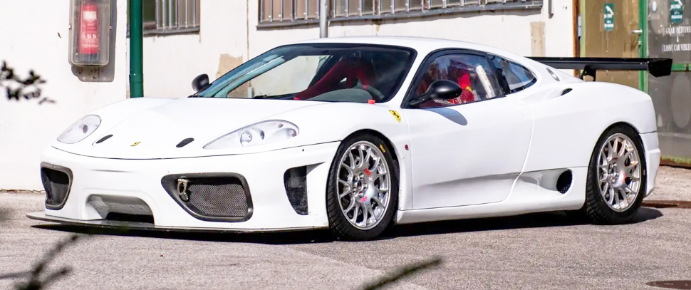360 CHALLENGE, VIN ZFFYR51B000119529 (1999). Bianco with rosso interior. Estimate €70,000 to €90,000. Originally sold to the Di Risio Competizione team for use in the Ferrari Challenge Trofeo Pirelli. Driven by several notable drivers between 2000 and 2004. Upgraded aerodynamically to comply with the regulations of the International GT Open series, in which it competed in 2006 and 2007. Including class wins at Vallelunga and Monza, 2nd in class at Brands Hatch, and 3rd at Magny-Cours. Serviced recently as June 2023. Lot 122. Sold for €57,500.