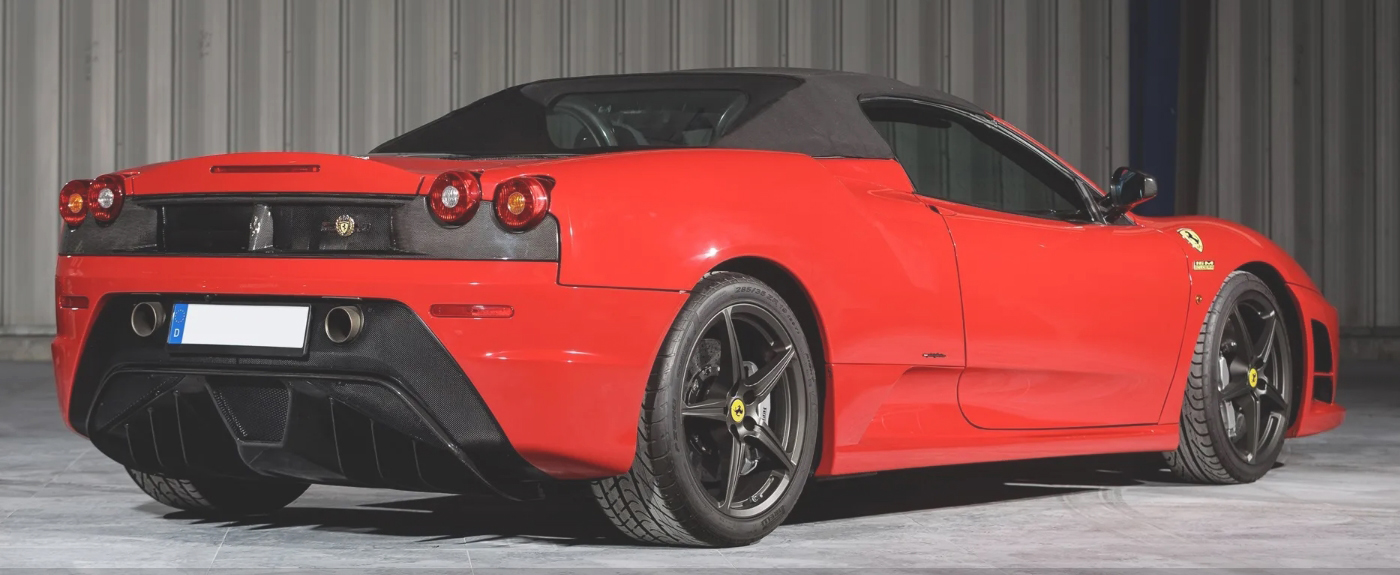 SCUDERIA SPIDER 16M, VIN ZFFKZ66B000169191 (2009). Rosso corsa with nero interior. Estimate €330,000 to €380,000. Delivered to first owner on 15 September, 2009, via Loris Kessel Auto Sa of Grancia, Switzerland. Options include carbon-ceramic disc brakes, silver brake calipers, giallo instruments, and tricolore racing stripe livery. Remaining in Italy for the first period of its life, it was serviced in 2011, 2012, 2015, and 2018. Again on 11 January, 2022, and, most recently 23 March 2023. 19,687 km. Accompanied by a tire inflator, umbrella, and tool roll. Lot 153. Sold for €353,750.