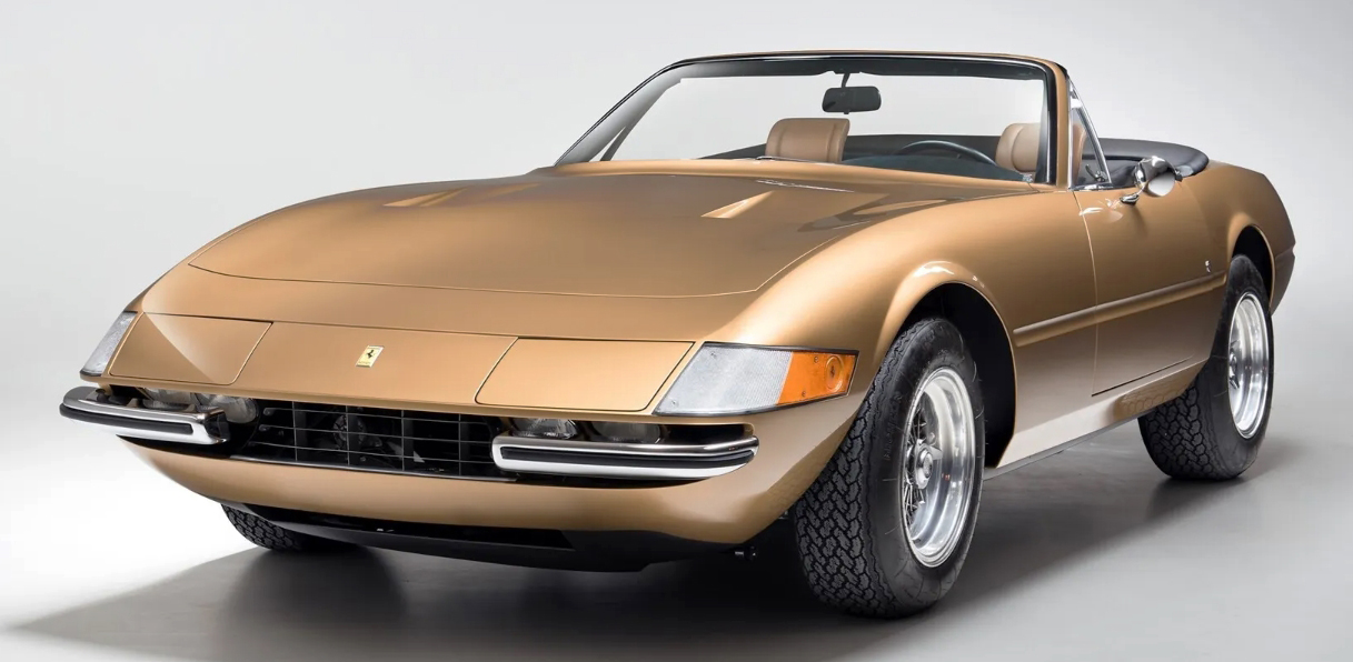 365 GTB/4 SPYDER, S/N 16689 (1973). Nocciola Metallizzato with Pelle Beige. Estimate €2.35 million to €2.65 million. Delivered during August 1973 to Ohio. Sold by the first owner in 1991, at nearly 41,000 miles. It was then imported into Germany. It passed through the hands of two German dealers, one of whom commissioned a full restoration; during this process the odometer was reset to zero. In 1994, the car was sold and enjoyed at many Ferrari events in the years that followed. After 17 years of ownership, the owner sold the car to the consigning owner. Wishing to return this Daytona Spyder to its original colors, the owner commissioned a cosmetic restoration during 2013 and 2014. Invoices and photos detailing the work are on file. Classiche Red Book certification in 2016. Lot 146. Sold for €3.1 million.
