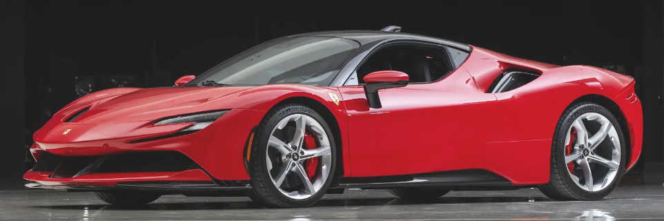 SF90 STRADALE, VIN ZFF95NLA1M0264314 (2021). Rosso corsa with nero interior. Estimate $600,000 to $700,000. No reserve. Completed in February 2021 and delivered new to the Dare to Dream Collection. Options include carbon fiber driver zone, rear shelf, door panels, upper center console, and dash inserts. Nero dashboard with red stitching throughout, electric seats with Cavallinos on the headrests with a red center stripe. The exterior features forged wheels, titanium wheel bolts and carbon fiber hubcaps with red brake calipers. Suspension lifter and front driving camera. 1,371 km. Battery charger, tools, tire inflator, owner’s manual, and delivery presentation box with partial contents. Lot 363. Sold for $472,500.