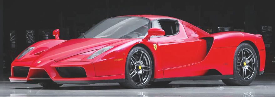 ENZO, VIN ZFFCW56AX30130270 (2003). Rosso corsa with Pelle Nero. Estimate $3.8 million to $4.5 million. No reserve. One of three examples (130270, 130688, 131026) ordered new by New York’s Caiola family. Delivered by Wide World of Cars on 20 August 2003. Despite its specification as a US-market car, a 2004 service invoice shows the technicians discovered Ferrari had equipped this Enzo with Euro-market ECUs, and these were duly replaced at no cost. In June 2006, it was sold to Beverly Hills. In its second owner’s care, in May 2008 he registered this Enzo in Alberta, Canada, although service history shows the car spent most of its days at properties in Southern California and Arizona. Just prior to entering the Dare to Dream Collection during January 2015, it was serviced by Ferrari of Vancouver. The Four-Year Service completed, as well as the fitment of a new windshield, oil pump, water pump, and refinishing of its front bumper. In July 2017, service included refreshing the chassis with new suspension components including ball joints, and sway bar links at all four corners. In February 2023 the front end was coated in protective film. A piece of fitted luggage, an additional set of wheels and tires in original condition, manuals, warranty card, and owner’s service book with pouch, and tools. Lot 357. Sold for $4.3 million.