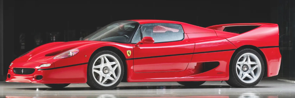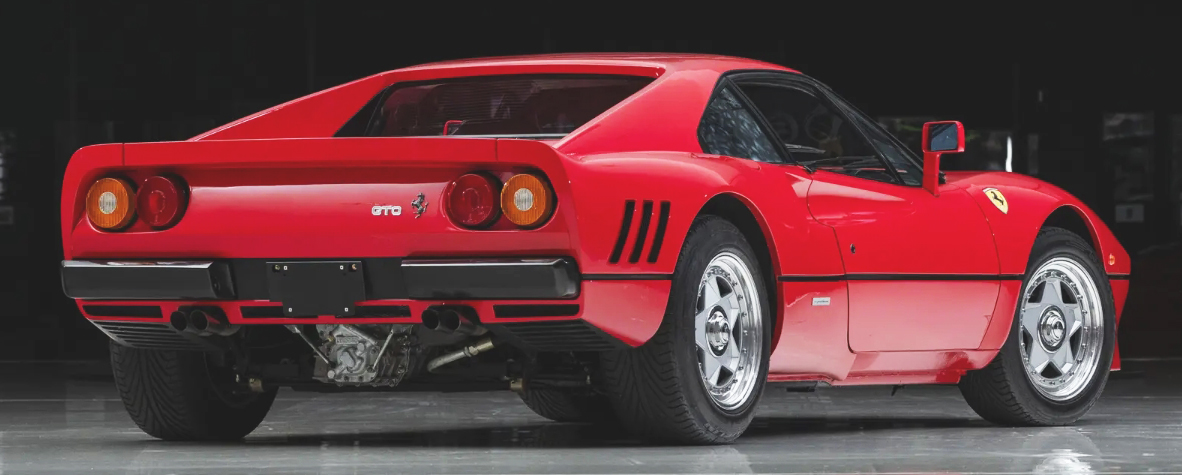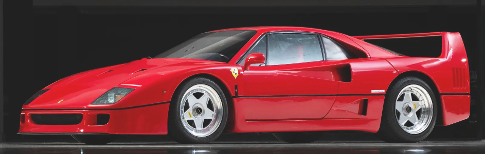 F40, VIN ZFFGJ34B000084169 (1990). Rosso corsa with Stoffa Vigogna. Estimate $2.7 million to $3.2 million. No reserve. Completed on 1 March 1990, imported from Europe to Japan three months later and first registered there on 11 June of 1990 in Osaka. In 2004, it would pass to another owner who retained it for five years before passing it on to its third and final Japanese caretaker in 2010. In 2015 it was sold to DK Engineering. Service included cambelts, fuel tanks, rear upper wishbone bushings, wheel lock clips, and fluids replaced, the suspension stripped and refurbished with overhauled dampers, the cam covers stripped and repainted, the valve clearances checked, and a fire system fitted. Classiche Red Book was issued on 9 February 2016. Manuals in pouch and tools. Since entering the Dare to Dream Collection in late 2015, it has been continuously maintained, with the water pump replaced and a turbo unit rebuilt in 2020, and the air conditioning system serviced and recharged in 2023. 1,606 km. Lot 320. Sold for $3.5 million.