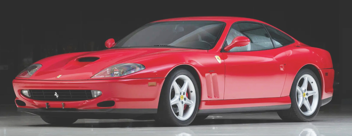 550 MARANELLO, VIN ZFFZS49A7Y0122078 (2000). Rosso corsa with nero interior. Estimate $200,000 to $250,000. No reserve. An original Canadian-delivery example sold new by Brian Jessel Sport Cars of Vancouver. It was acquired for the collection from a seller in Concord, Ontario, in 2011. Invoices on file for service and improvements over the last decade. In 2011, Ferrari Maserati of Ontario performed a belt service at 2,523 km. Further service and an oil change followed in 2013, and in 2022 the shock actuators were rebuilt, and the “sticky buttons” were corrected. Small paint chips to the front air dam. 6,729 km. Complete with books in their folio with flashlight, tool kit, and a piece of British-made Globe-Trotter luggage trimmed to match the car’s nero interior. Lot 312. Sold for $296,500.
