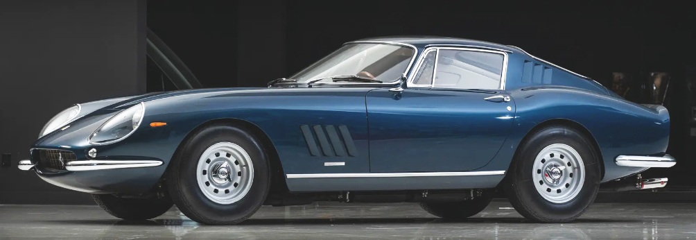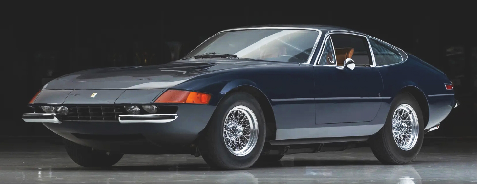 275 GTB/4, S/N 10427 (1967). Midnight blue with cream interior. Estimate $2.8 million to $3.4 million. No reserve. Specified for the French market with instruments in kilometers and yellow headlamp lenses; finished in Argento paint with nero leather interior, including full leather seats. Distributed through French importer Franco-Britannic Autos in Paris, and delivered in November 1967 to its first owner. Over the next 43 years, the 275 passed through a short chain of four additional French caretakers before being offered in July 2010. It was acquired by a collector in Greece, and he commissioned a cosmetic refinish in the current midnight blue over cream. Classiche certification in May 2012 with Certificate of Authenticity were issued. Shortly thereafter the berlinetta was sold to a Swiss watch manufacturer. In October 2013 the Ferrari was acquired by the Dare to Dream Collection. Accompanied with manuals in their pouch and a reproduction tool roll. Lot 371. Sold for $3.3 million.